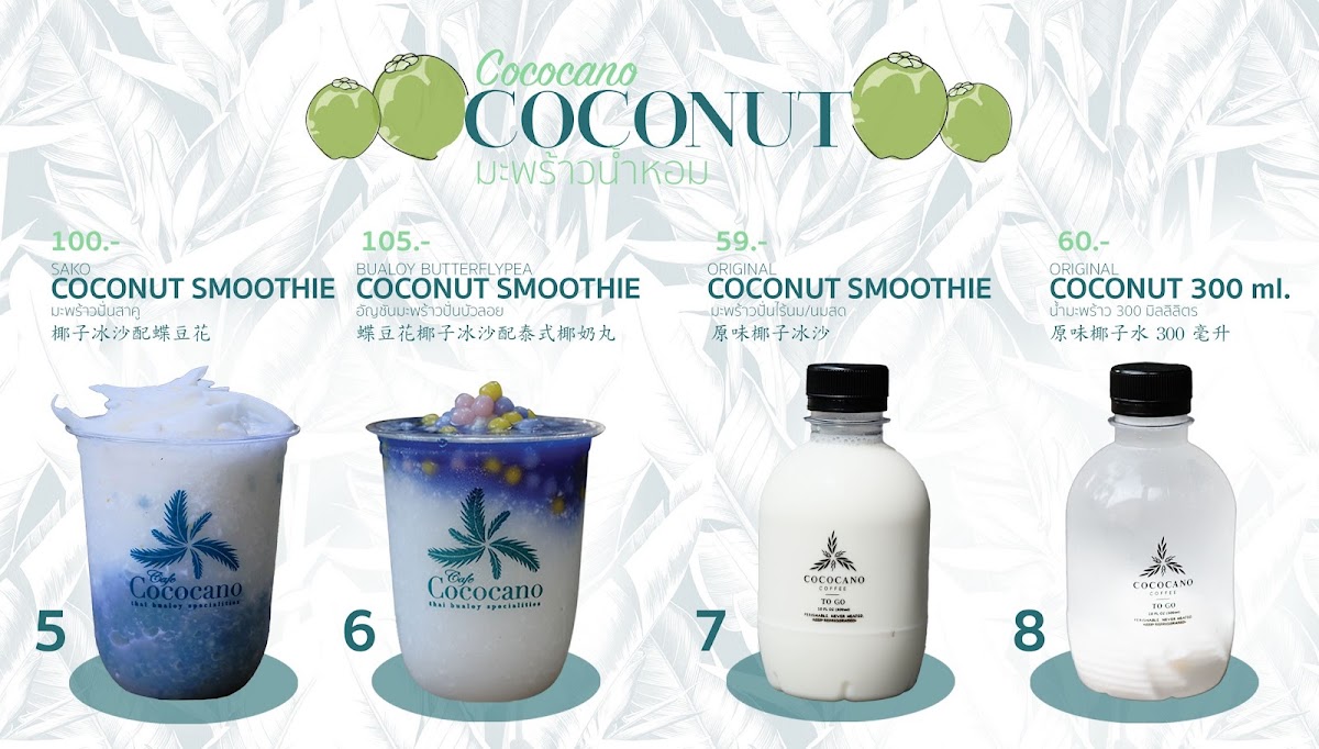 At the heart of Cococano's menu is their signature use of premium coconut ingredients, handpicked from Ratchaburi. The star of the show is undoubtedly their Coconut Latte, a luscious blend crafted with fragrant coconut water that makes each sip a tropical delight. For those who enjoy a refreshing twist, the Iced Coconut Latte Green Tea is an invigorating choice that harmoniously combines the refreshment of coconut with the soothing essence of green tea, all for just THB 75.00.